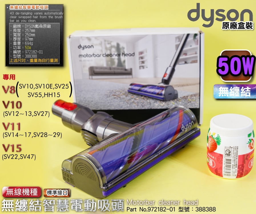 品名:Dyson原廠【50W-無纏結】【盒裝】無纏結智慧電動吸頭Motorbar cleaner head 【Part No.972182-01】(型號:388388)