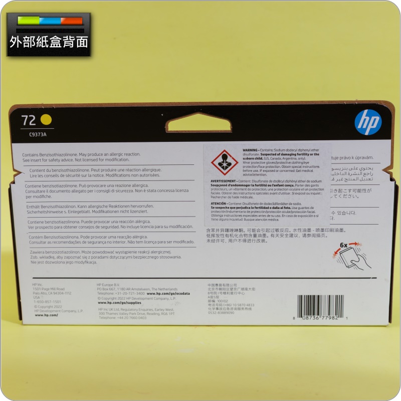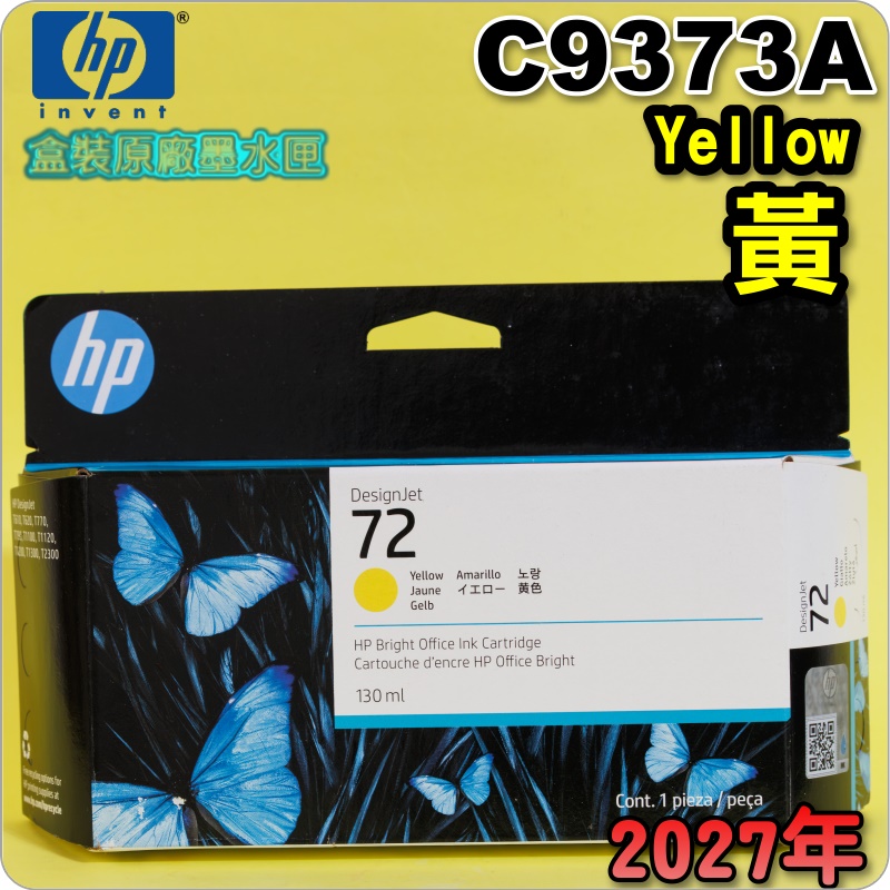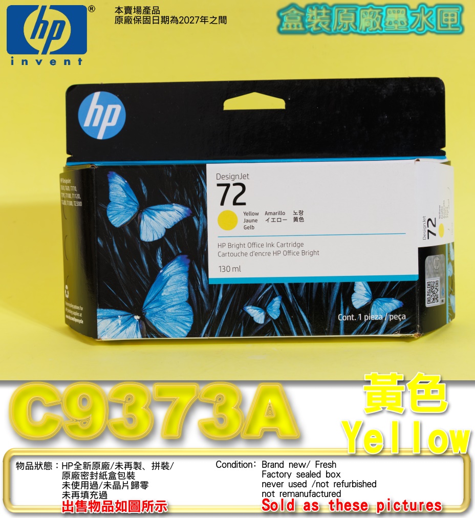 HP NO.72 C9373A 【黃】原廠墨水匣-盒裝(2027年之間)