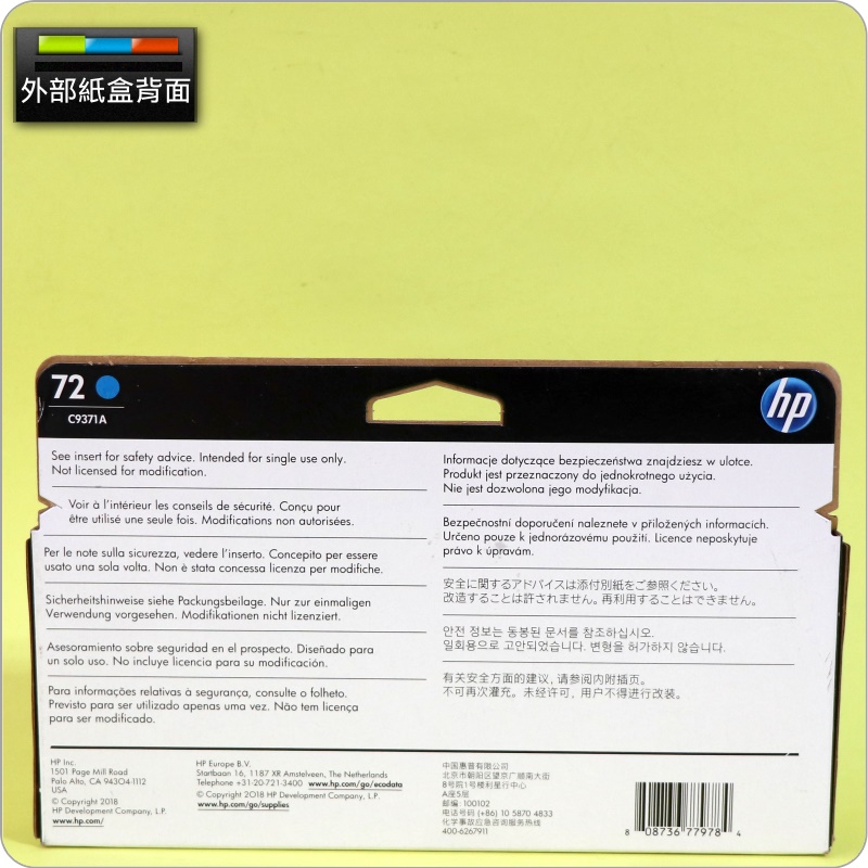 品名:HP NO.72 C9371A原廠墨水匣『』(2025年之間)盒裝T610 T790 T795 T1100 T1300 T2300